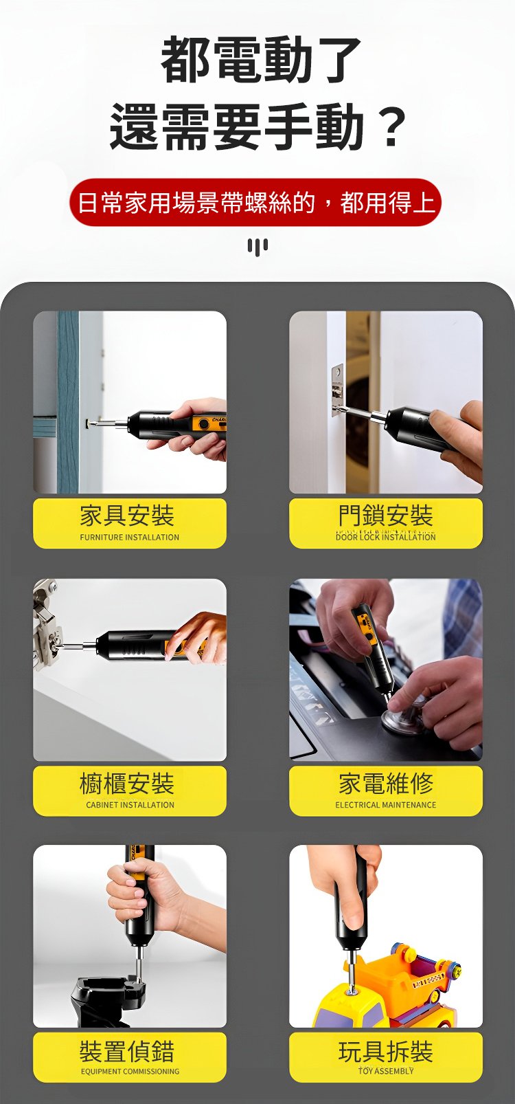 4分鐘前便攜式家用電動螺絲起子-全能套裝 - 電動螺絲起子-贈送兩個長批頭-不推薦-NT999