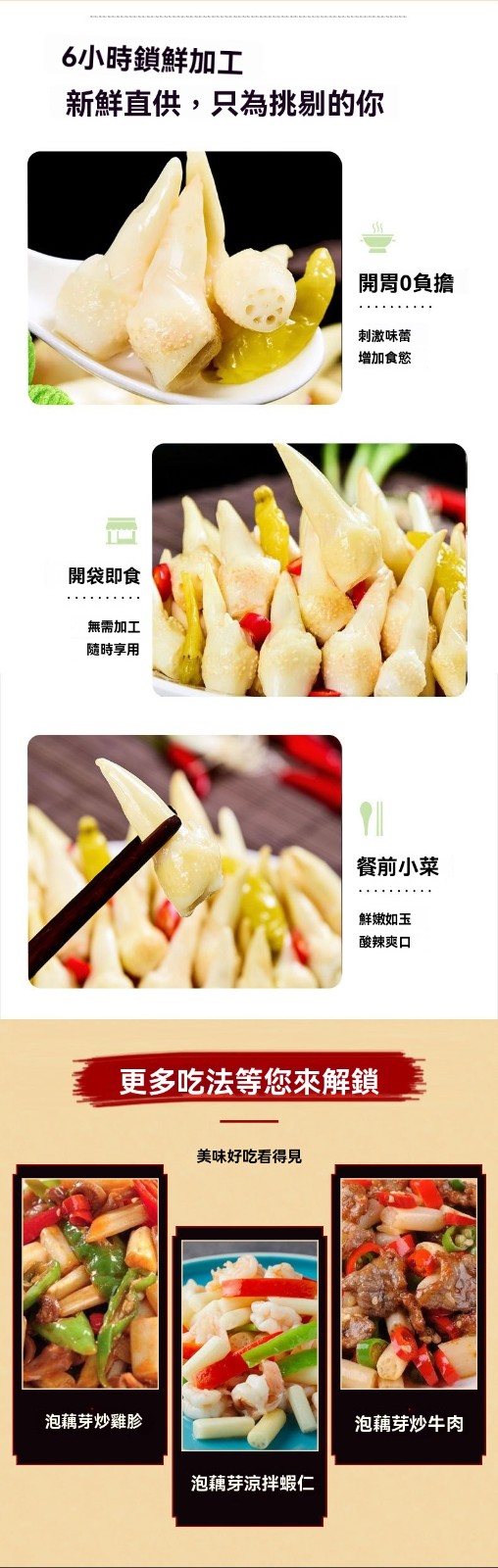 2分鐘前【白河藕芽】開胃小菜,酸辣爽口,特色口味,選用優質藕芽製作,炒菜、拌麵非常脆嫩 - 【今日限定 買二發三】3入組 NT$998