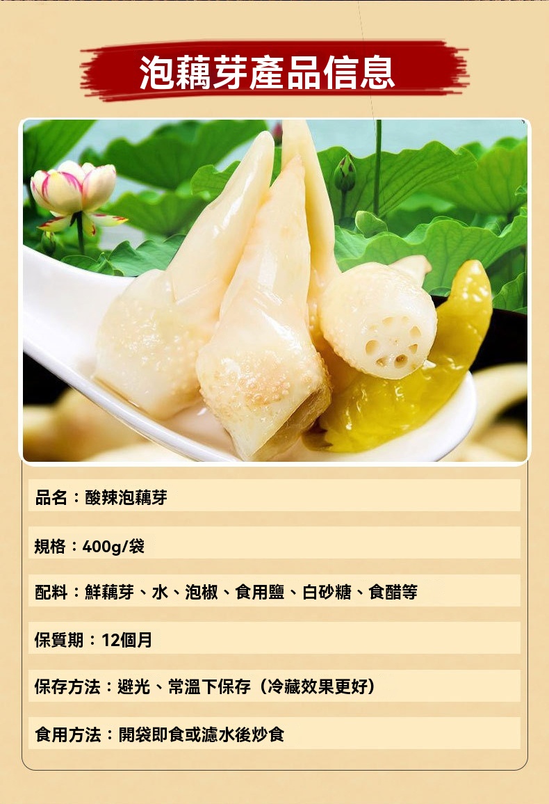 12分鐘前【白河藕芽】開胃小菜,酸辣爽口,特色口味,選用優質藕芽製作,炒菜、拌麵非常脆嫩 - 【限時特惠 買三發四】4入組 NT$1298